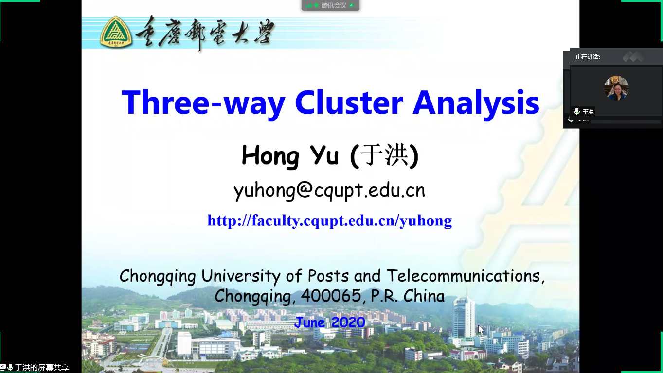 应公司邀请,6月22日下午,重庆邮电大学于洪教授在腾讯会议作了题为《三支决策和三支聚类》的报告。相关师生聆听了此次报告,报告由廖淑娇副教授主持。