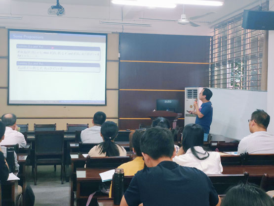 报告中,鲁红亮教授首先介绍了allowed set定义,说明了定理证明的推广。接着,分别阐述了D(G)、A(G)、B(G)、C(G)集合的定义,及它们之间存在的关系。以最优图为例,详细介绍了定理的引理。最后,介绍了结合几个具体图论问题的案例,阐述了研究方法和结论。