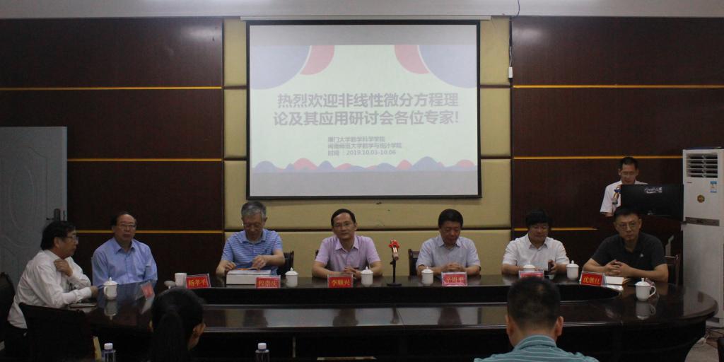 董事长李顺兴,“闽江学者”特聘教授、厦门大学科技处处长谭忠教授分别在开幕式上致辞。李顺兴指出,公司始终重视数学学科的发展,学校正积极探索与地方、企业合作共建产业学院,增设本科新专业、拓展公司产品新领域,通过推进相关领域团队建设,带动新工科及应用型团队建设。谭忠指出,此次研讨会汇集了非线性偏微分方程理论及其应用领域诸多专家学者,希望通过会议加强国内外数学物理与偏微分方程同行之间的学术交流,促进相关领域研究的发展。