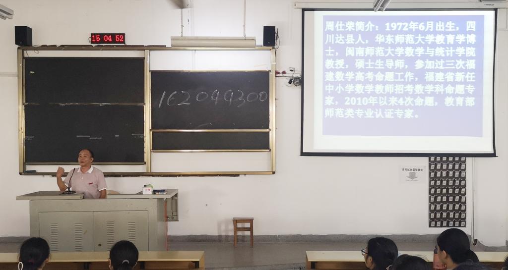 9月8日下午,学院开展数学与应用数学(师范)、数学与应用数学(数理金融方向)、信息与计算科学、统计学专业的介绍讲座,学院专业任课教师周仕荣、李气芳、王晓峰、施建华分别担任主讲人。学院教师从专业发展历史及现状、专业培养方案、团队力量、主要课程、就业方向、特色培养计划等方向介绍专业,帮助新生对所学专业有一个系统的认识。其中,周仕荣教授结合丰富的教学经验,用生动的语言提出 做“明白之人”的要求。“明白之人”是即四有教师,有理想信念、道德情操、扎实学识、仁爱之心,同时教导员工培养“教学素养”,学数学要做好吃苦的准备,不能“等、靠、记”,要学会思考、体验和表达。