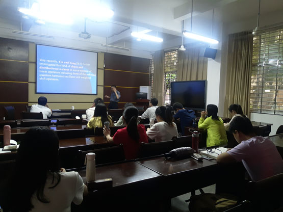 杨启贵教授在报告会上首先讲述了关于混沌系统的一些研究及其进展,然后从最简单的系统开始介绍,对简单非线形Lorenz型系统进行了说明,并通过图形对具有1个鞍点、2个鞍焦点和3个鞍点的混沌系统进行了阐述;随后对混沌系统进行了详细的说明,其中对混沌系统中仅包含同宿环、仅包含异宿环、同时包含同宿环和异宿环进行了说明,同时还阐述了混沌的不变集;接着提出了一个新的混沌系统——3维3片,并讲述了其研究;最后对一些未解决的问题进行了讨论。报告会结束后,在座师生就相关研究进行了探讨和交流。