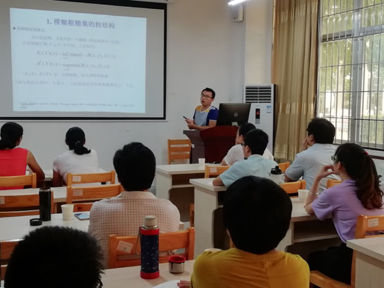 在报告中,谭安辉博士首先讲述了模糊粗糙集的粒结构和应用模糊粗糙集的方法的属性约简;其次介绍了直觉模糊粗糙集的粒结构和应用直觉模糊粗糙集方法的属性约简;最后用实例解说了应用直觉模糊粗糙集方法的属性约简和部分属性约简的未来工作。报告结束后,在座的老师和员工就相关研究问题进行了探讨和交流。