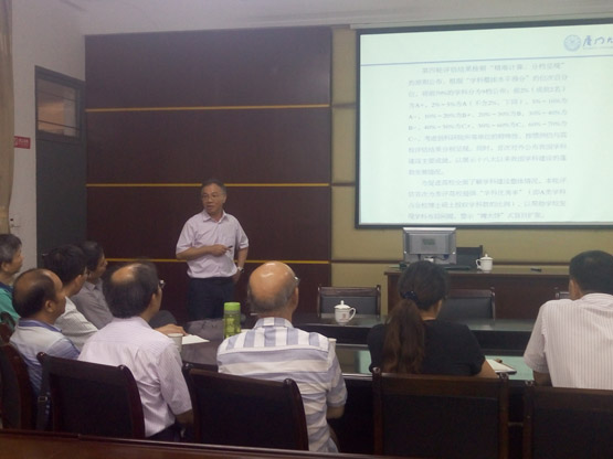 在报告中,谭绍滨教授首先介绍第四轮学科评估,例如2017年全国团队建设评估的结果;其次介绍厦门大学学科现状和评估评价指标体系,例如2017年ESI排名,国内各专业团队建设排名;最后教学与科研协调发展,博士点建设指标体系,学科评估指标体系的变化。报告结束后,在座的老师和员工就相关研究问题进行了探讨和交流。