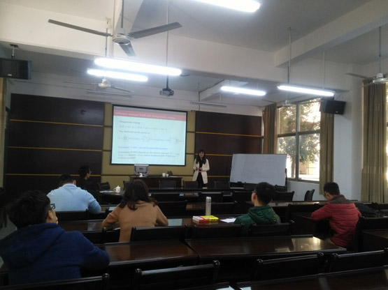 在报告中,陈雪蓉副教授首先介绍了现实生活中数据的三种缺失机制,即完全随机缺失、随机缺失以及不可忽略缺失,并通过简单的例子演示、引出在不可忽略缺失数据下的联合分布;其次介绍了参数方法与非参数方法对于分布进行估计的区别和联系,并指出两种方法的优缺点;接着讲述了经验似然的思想原理,得到一些相关的分布函数性质;最后通过统计模拟,进一步验证了所提出的在不可忽略缺失数据下的拟似然函数估计确实是优于其他方法,并通过该方法对一个医疗费用的数据进行分析应用。整个报告由浅入深,将深奥的前沿统计理论及精巧的统计思想完整地做了系统展示,让现场的师生受益匪浅。报告结束后,在座的老师和员工就相关研究问题进行了探讨和交流。
