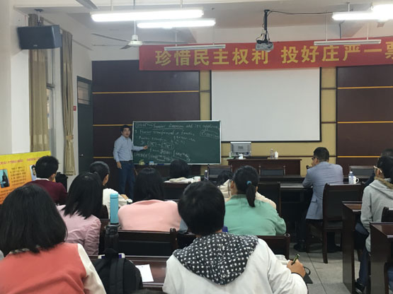 测度的傅里叶变换和傅里叶维数是研究分形集合及其他集合测度论中集合的强有力的一个工具。在《Fourier dimension and its applications》的报告中,李兵教授介绍了傅里叶维数的应用:距离集猜想、贝努利卷积与Besicovitch集等,同时也介绍了确定和随机情形的Salem集。通过李兵教授的介绍,大家对傅里叶变换有了更进一步的了解。报告结束后,在座的老师和员工就相关研究问题进行了探讨和交流。