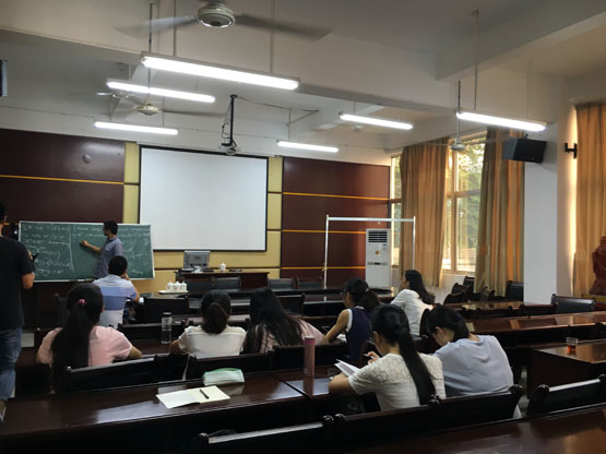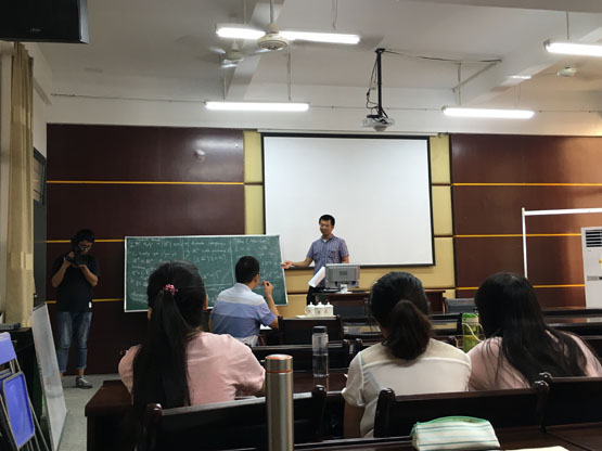 丢番图逼近是长期具有生命力的一数学分支,近来发展十分迅猛。在报告《Hausdorff dimension of weighted singular vectors》中,石荣刚副教授从经典的Dirchlet定理出发,讲到具有权重的Dirichlet定理。因此,引出带权重的奇异向量的概念以及他们近期的结果:平面上带权重奇异向量集合的Hausdorff维数。报告结束后,在座的老师和员工就相关研究问题进行了探讨和交流。