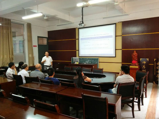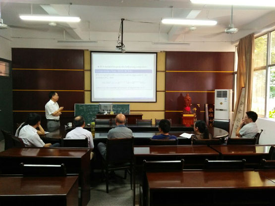 图的支撑树的计数问题是图论的一个重要研究课题, 它在计算机科学和统计物理等学科均有非常重要的应用,在《On the number of spanning trees of middle graphs》的报告中,晏卫根教授主要从线图(line graphs),剖分图(subdivision graphs),中间图(middle graphs)的支撑树的计数问题展开,分别给出了这三类图的支撑树数目的精确表达式。报告结束后,在座的老师和员工就相关研究问题进行了探讨和交流。