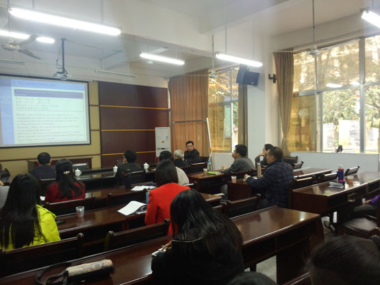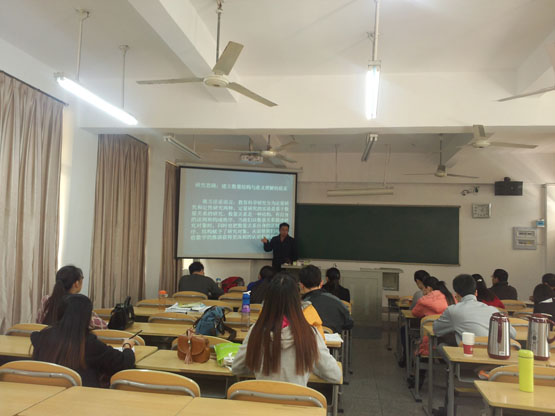 在报告《The rough membership functions on covering-based rough sets and their applications in real life》中,葛洵副教授主要从Pawlak的现实背景以及最隶属函数的应用以及局限性的研究进行了详细的讲解。在报告《Quantititive analysis techniques in classroom teaching evaluation》中,葛洵副教对课堂生态系统的总体测量公式的相关数值的计算工和模糊决策在课堂生态系统定量测评在教学实践中的应用以及意义进行了详细的讲解。报告结束后,在座的老师和员工就相关研究问题进行了探讨和交流。