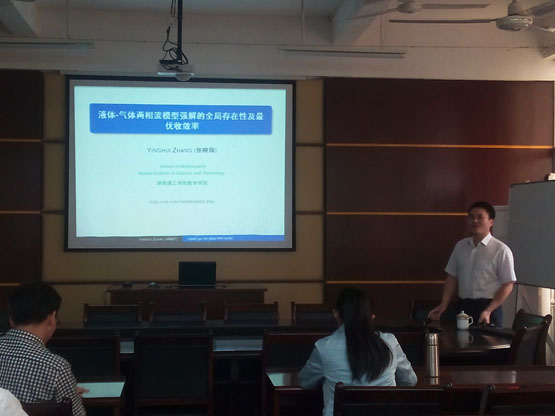 应公司邀请,2015年5月22日上午,湖南理工学院数学学院张映辉副教授在砺志楼114作了一场题为《液体-气体两相流模型强解的全局存在性及最优收敛率》的学术报告。公司部分教师和研究生聆听了此次报告,报告由陈淑红副教授主持。