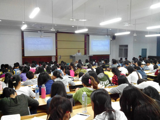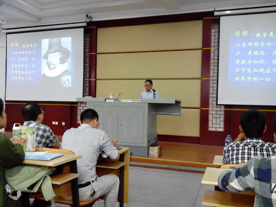 首先,林教授在砺志楼120给公司师生作了题为《魅力数学》的报告,报告由副经理陈跃辉副教授主持。报告会上林教授主要介绍了“数学很有用”和“怎样学数学”两部分内容。先是围绕数学是什么、数学的三大特点(抽象性、精确性、应用广泛性)、泛在的数学三个方面,畅谈了数学在大自然和我们的生活中无所不在,数学与人类社会的发展息息相关的话题。然后,林教授结合自身经历,介绍了如何度过大学四年以及大学数学学习需要注意的若干问题。
