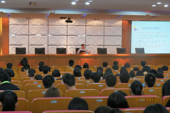 然后,徐院士在逸夫图书馆5楼报告厅作了一场题为《漫谈数学与信息技术》的学术报告,他用生动形象的语言从为什么要学习数学、模糊识别与数学、信息获取与数学、图像视频处理与数学等四个方面阐述了学习数学的重要性,用现实中的应用实例揭示了很多高新技术的实质就是数学技术。