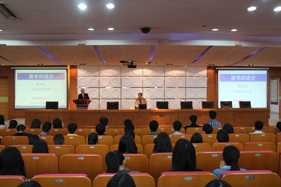 报告会上,陈院士首先用深入浅出的语言讲述了六个百年难题的破解:Bieberbach conjecture、费马大定理、Kepler球堆积猜想、Poincae猜想、有限单群的分类和孪生素数猜想。接着,陈院士从生活中的搜索引擎、稳定性、经济学的最优解模型三个方面,结合亲身经历形象生动说明了研究领域的扩展,说明了数学应该重归自然,同时指出了数学中待开垦的一些领域。最后,陈院士介绍了国内外政府民间对数学的关注。报告在陈院士与师生的积极互动中圆满结束。