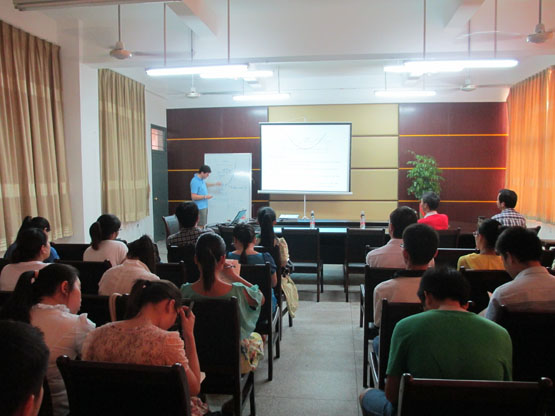 报告会上,Peter De Maesschalck教授首先介绍了“History and research value of Periodic orbits”、“Short course on the van der Pol equation”、“Canard cycles”和“Main Theorem”等内容。然后,Peter De Maesschalck教授和现场的师生进行了亲切的交流。