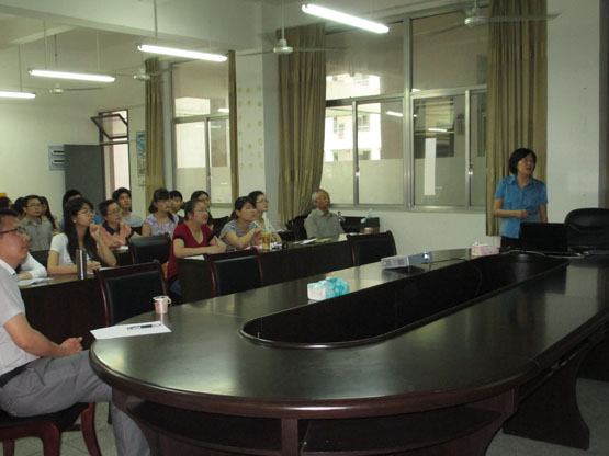 报告会上,吴教授首先介绍了“经典分形曲线—Koch曲线的生成与特征”、“分形集合的基本特征及其他分形例子”、“什么是分形维数?”、“分形几何的应用及分形图欣赏”和“分形这门学科的发展”等内容。然后,简单介绍了华南理工大学理学院数学系分形几何的团队队伍,并表示欢迎我系员工报考华南理工大学理学院研究生。