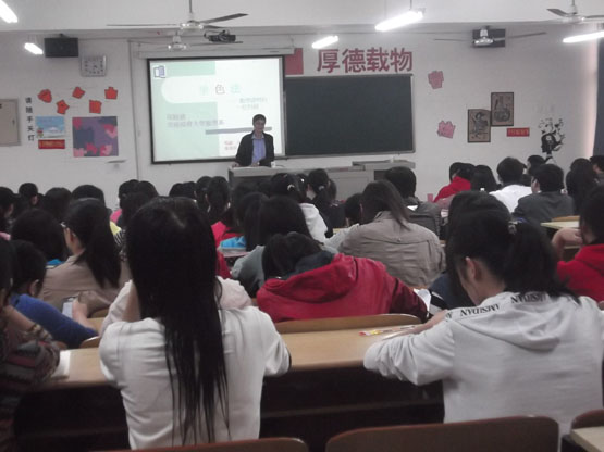 下午3点半,邵教授在砺志楼226作了一场《涂色法》的学术报告,部分研究生和本科生聆听了此次报告,报告由赖春晖教授主持。报告会上,邵教授首先介绍了“切割图形”、“多方块填补已知图形”、“不规则多方块拼接成规则图形”和“六人聚会问题”等内容。邵教授的讲解融专业性和趣味性为一体,激发了在场同学们的学习兴趣。
