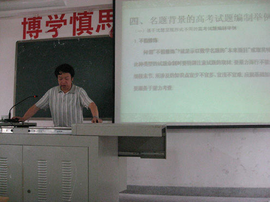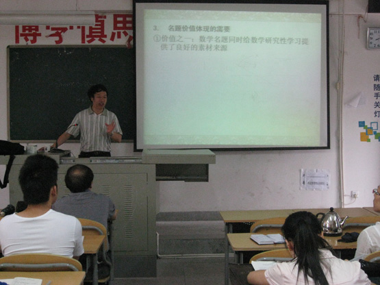 应我系邀请,2012年5月31日上午,福建师范大学数学与计算机学院陈清华教授在砺志楼304做了一场题为“编制名题背景试题,体现文化价值理念”的报告。我系教育硕士和其他相关专业研究生参加了此次报告。