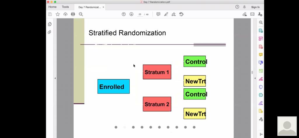 报告中,王宏鲲教授首先向我们介绍了本次报告的大致内容,即治疗手段的分配问题。紧接着,王宏鲲教授为我们介绍了随机分布的临床试验的特点。然后,王宏鲲教授为我们重点讲解了随机分布的几种类型,即固定随机分布、严格随机分布、调节随机分布,其中严格随机分布又包括permuted block随机分布和分层随机分布。最后,王宏鲲教授为我们总结了讲座的内容。报告结束后,在座的师生就相关研究问题进行了探讨和交流。