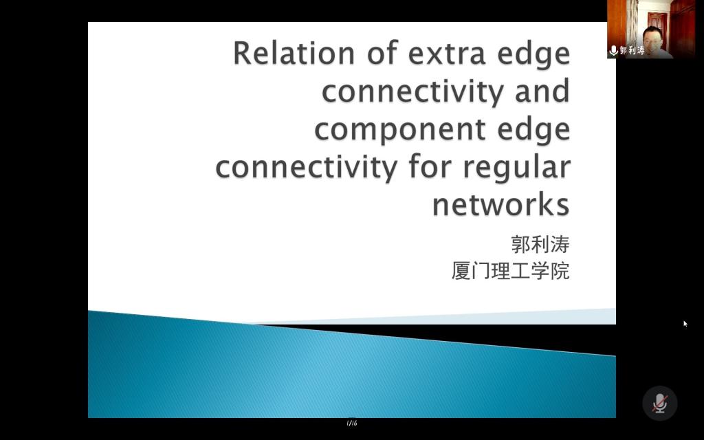 应公司邀请,10月22日下午,厦门理工学院郭利涛教授在腾讯会议作了题为《Relation of extra edge connectivity andcomponent edge connectivity for regular networks》的报告。相关师生聆听了此次报告,报告由卢福良教授主持。