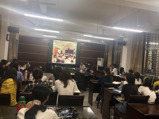 报告中,林新建老师分为四个部分来阐述他的主题:第一部分是什么是教育科研观,第二部分是为什么要有教育科研观,指出教师必须要有研究数学、员工、教学的意识,还要会反思、创新、做实践的研究者;第三部分是树立正确的教育科研观,林老师以自己多年的教学经验与教学经历总结了八大观,其中包括员工观、学习观、课程观、教材观、合作观、反思观、听课观、教研观;第四部分是走好精彩为师路。在介绍过程中,林新建老师多次分享了自己和员工的课堂照片和生活小故事,令在场的师生收获满满,并对林新建老师的教学方法称赞连连。报告结束后,在座的师生就相关研究问题进行了探讨和交流。