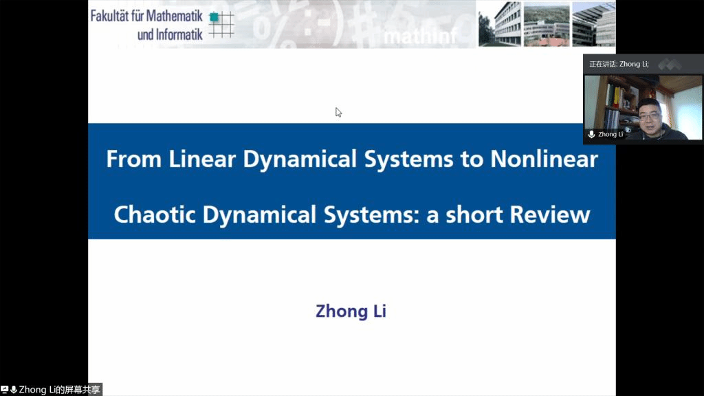 应公司邀请,12月17日下午,德国哈根大学李忠教授在腾讯会议作了题为《From Linear Dynamical Systems to Nonlinear Chaotic Dynamical Systems: a short Review》的报告。相关师生聆听了此次报告,报告由吴晓锋教授主持。