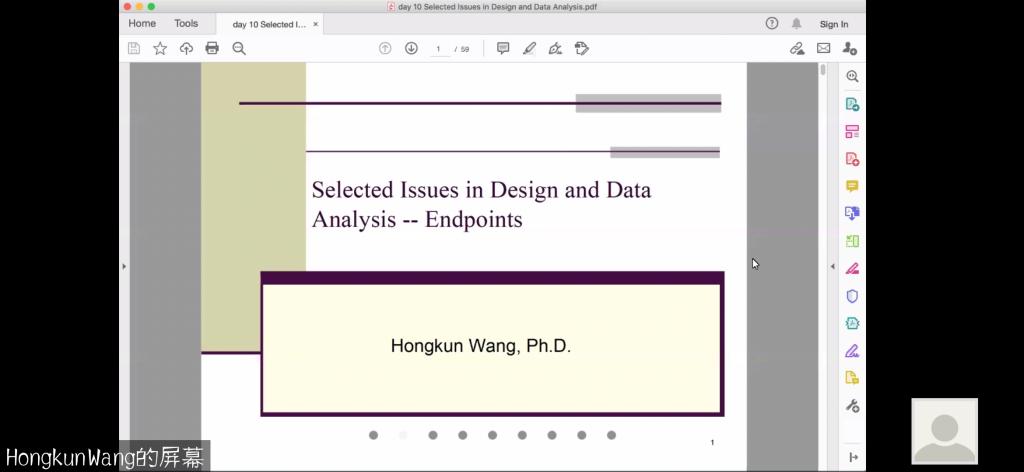 应公司邀请,12月21日上午,美国乔治城大学王宏鲲教授在Zoom会议作了题为《Selected Issues in Design and Data Analysis--Endpoints》的报告,相关师生聆听了此次报告。