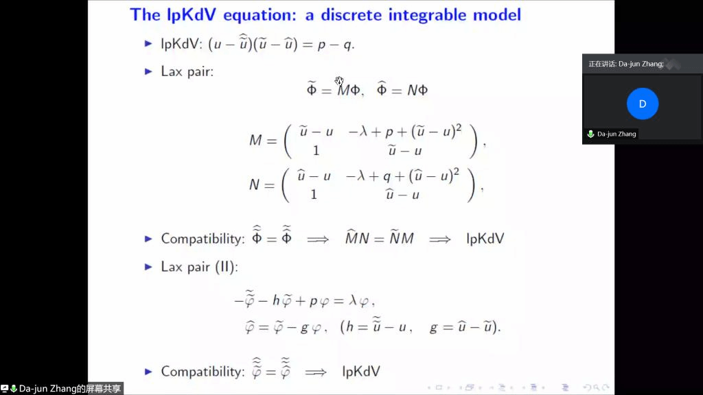 应公司邀请,12月23日下午,上海大学张大军教授在腾讯会议作了题为《Darboux变换与离散可积系统》的报告。相关师生聆听了此次报告,报告由樊方成博士主持。