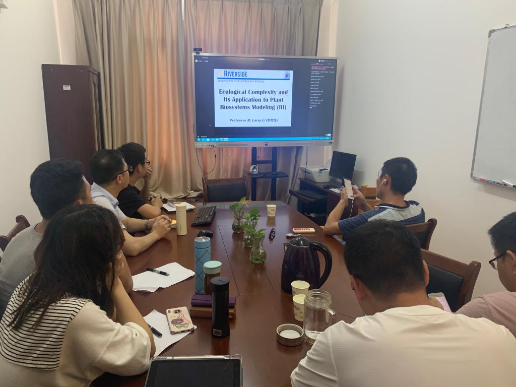 应公司邀请,5月19至21日下午,美国加州大学河滨分校数学与理论生态学教授李百炼在QQ群作了题为《Ecological Complexity and Its Application to Plant Biosystems Modeling》的系列报告,相关师生在8号楼404室聆听了此次报告,报告由吴晓锋教授主持。