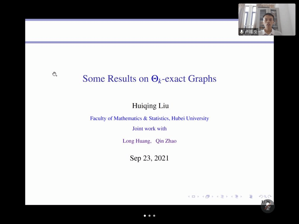 应公司邀请,9月23日上午,湖北大学刘慧清教授在腾讯会议作了题为《Some results on $\Theta_k$-exact graphs》的报告。相关师生聆听了此次报告,报告由卢福良教授主持。