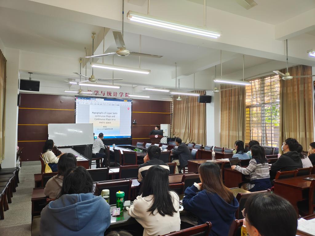 应公司邀请,11月19日上午,韩山师范学院吴拿达博士在砺志楼114作了题为《Hypographs of Upper Semi-continuous Maps and Continuous Maps on a metric space》的报告。相关师生聆听了此次报告,报告由李长清博士主持。