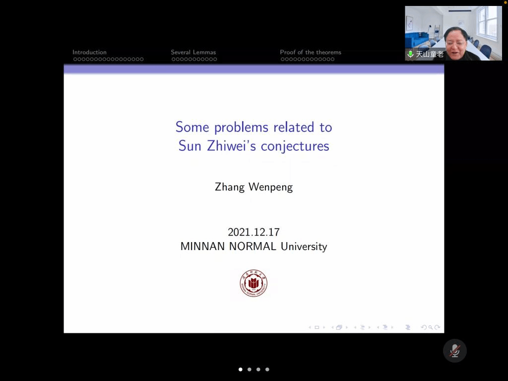 应公司邀请,12月17日下午,西北大学张文鹏教授在腾讯会议作了题为《Some problems related to Sun Zhiwei's conjecture》的报告。相关师生聆听了此次报告,报告由曹炜教授主持。