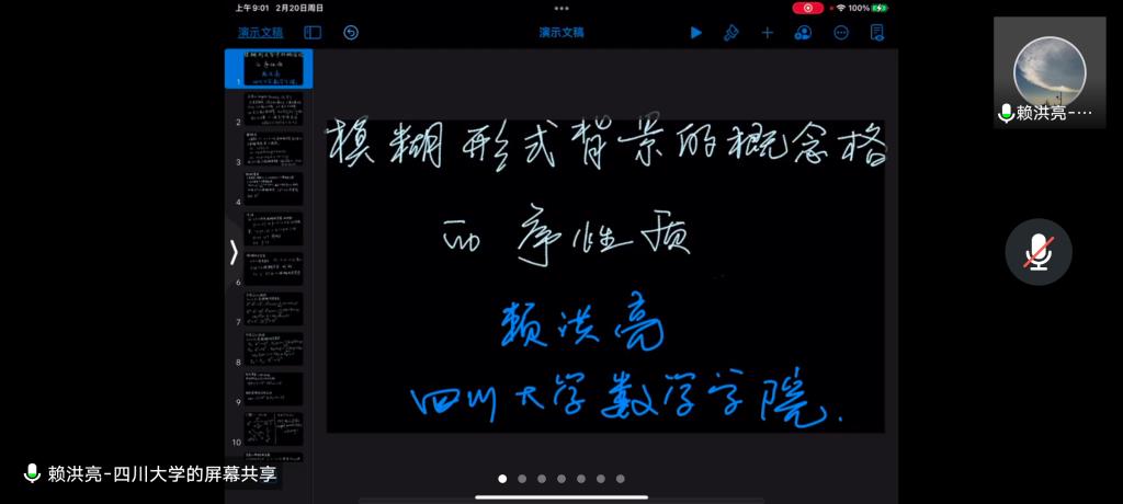 应公司邀请,2月20日早上,四川大学赖洪亮教授在腾讯会议作了题为《模糊形式背景的概念格的序性质》的报告。相关师生聆听了此次报告,报告由李进金老师主持。