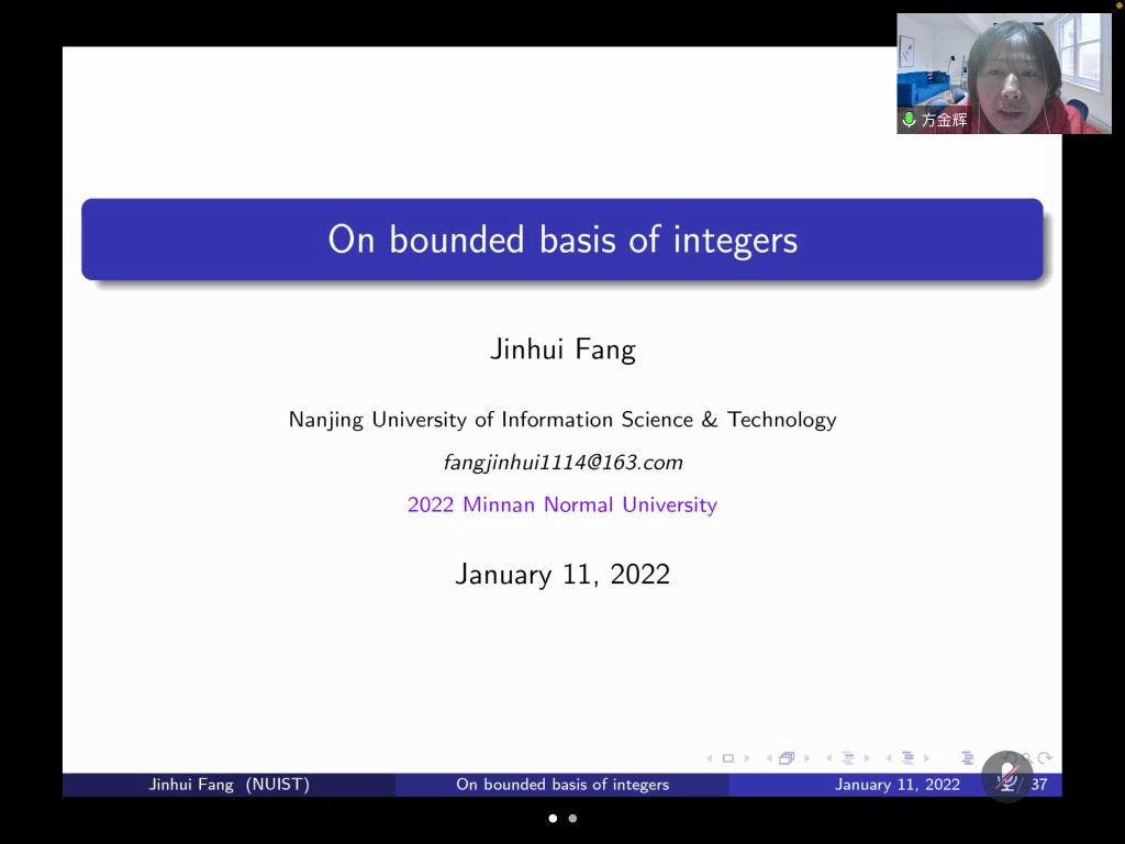 应公司邀请,1月11日下午,南京信息工程大学方金辉教授在腾讯会议作了题为《On bounded basis of integers》的报告。相关师生聆听了此次报告,报告由曹炜教授主持。
