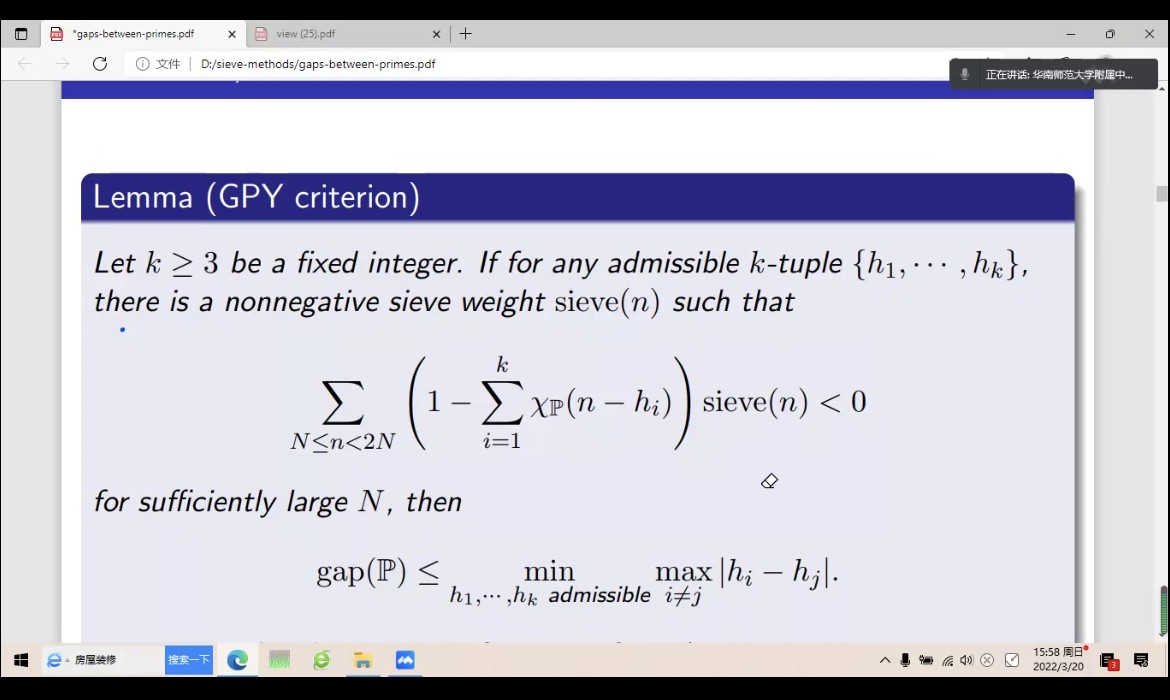 应公司邀请,3月20日下午,上海交通大学刘春雷教授在腾讯会议作了题为《ON THE GAP BETWEEN PRIMES》的报告。相关师生聆听了此次报告,报告由曹炜老师主持。