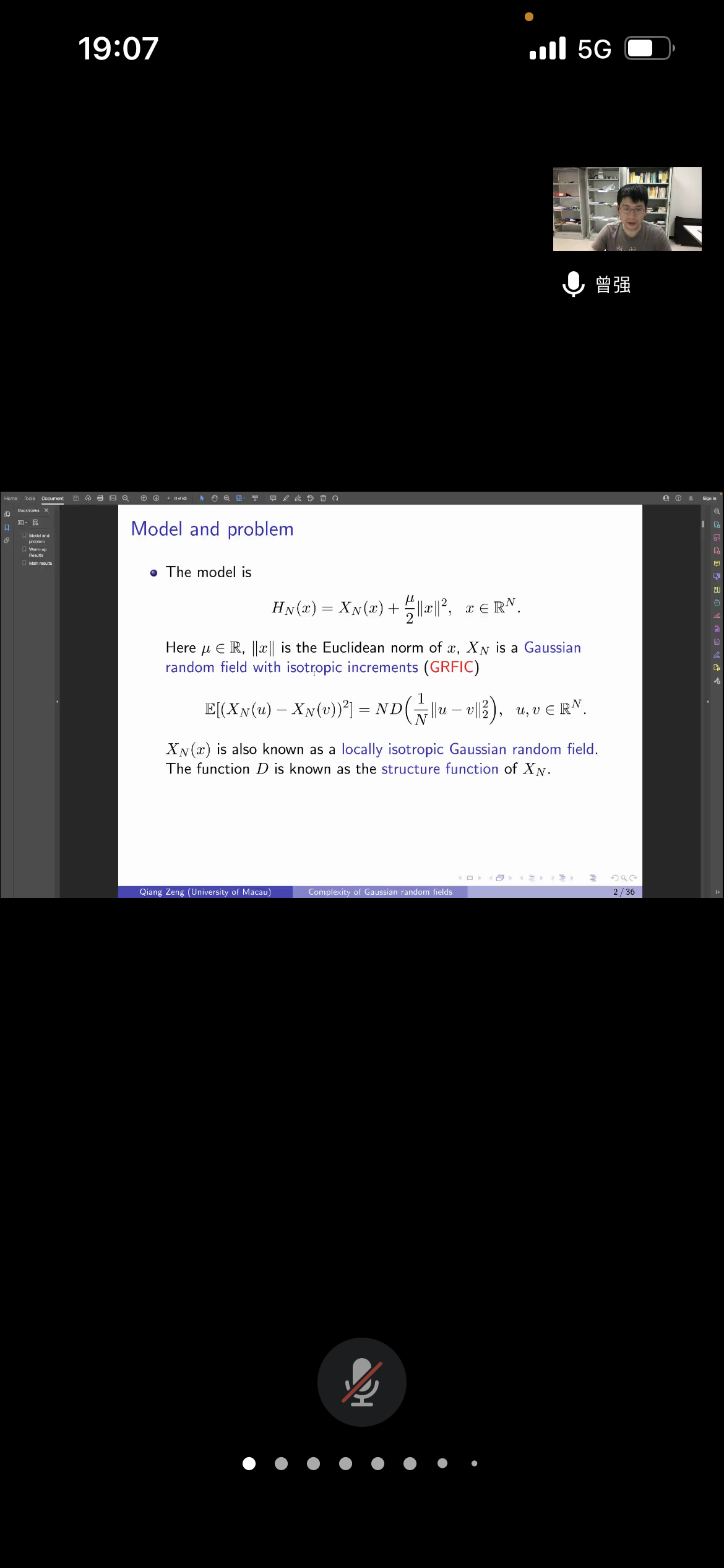 应公司邀请,5月11日晚上,澳门大学曾强副教授在腾讯会议作了题为《Complexity of high dimensional Gaussian random fields with isotropic increments》的报告。相关师生聆听了此次报告,报告由刘群老师主持。
