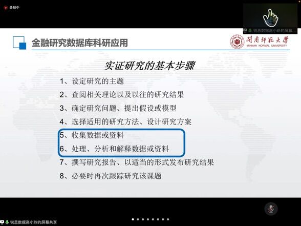 应公司邀请,5月20日早上,北京聚源锐思数据科技有限公司高小玲经理在腾讯会议作了题为《大数据视角下的实证研究—基于RESSET锐思数据库》的报告。相关师生聆听了此次报告,报告由施建华老师主持。