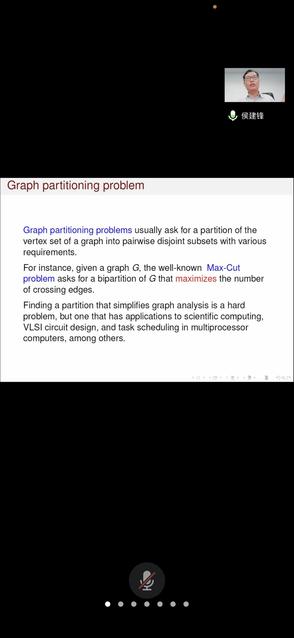 应公司邀请,6月8日下午,福州大学侯建锋教授在腾讯会议作了题为《On bisections of graphs without complete bipartite graphs》的报告。相关师生聆听了此次报告,报告由卢福良老师主持。