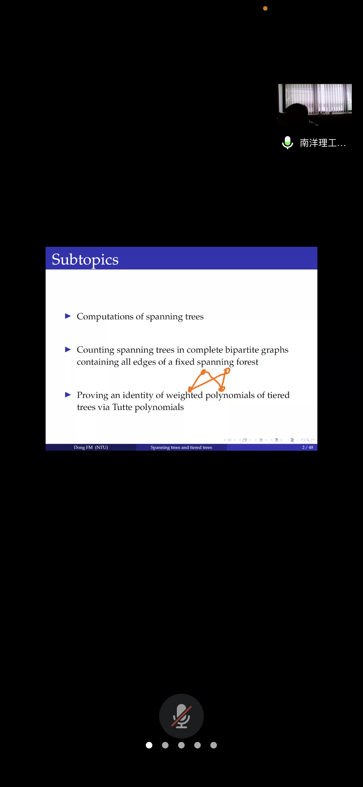 应公司邀请,6月24日下午,新加坡南洋理工大学董峰明副教授在腾讯会议作了题为《On spanning trees and tiered trees》的报告。相关师生聆听了此次报告,报告由卢福良老师主持。