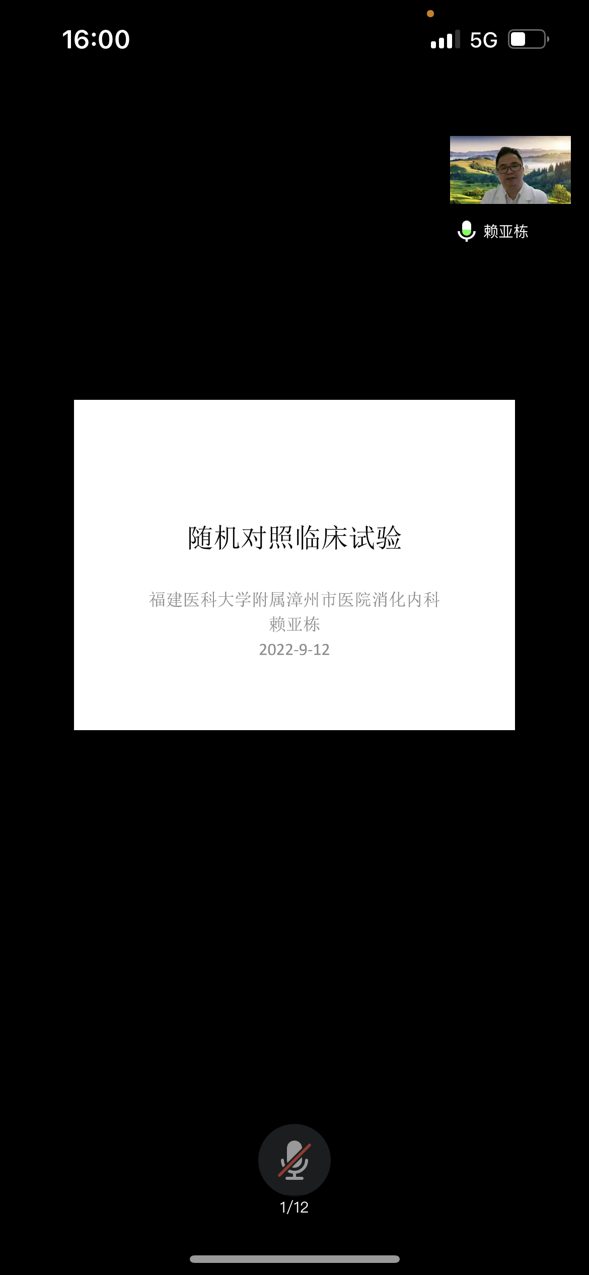 应公司邀请,9月19日下午,福建医科大学附属医院赖亚栋主任在腾讯会议作了题为《随机对照临床试验》的报告。相关师生聆听了此次报告,报告由施建华老师主持。