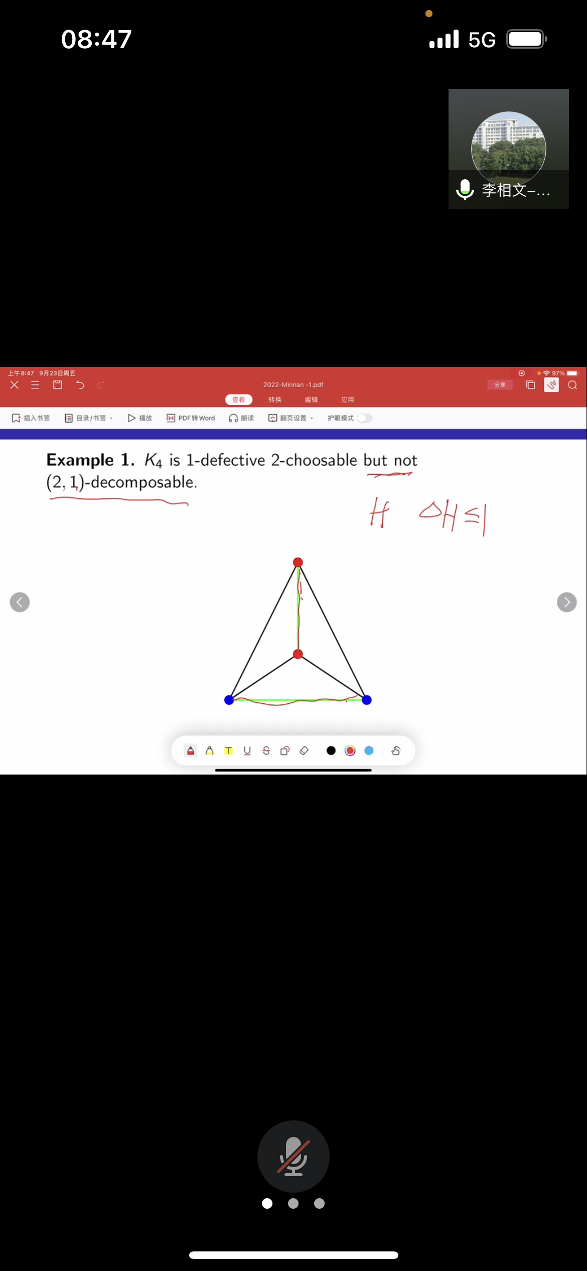 应公司邀请,9月23日早上,华中师范大学李相文教授在腾讯会议作了题为《Decomposing graph of nonnegative characteristic with some forbidden subgraphs》的报告。相关师生聆听了此次报告,报告由卢福良老师主持。