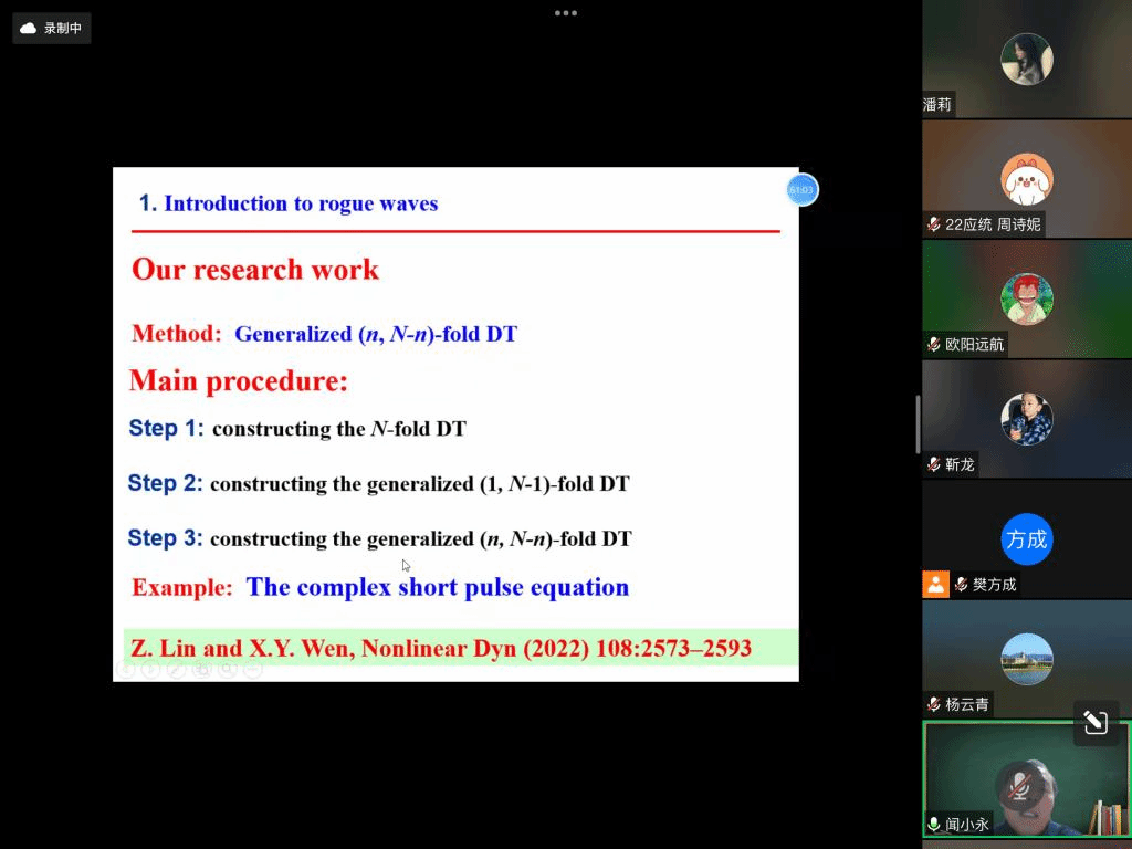 应公司邀请,11月16日晚上,北京信息科技大学闻小永教授在腾讯会议作了题为《Position controllable loop localized wave solutions》的报告。相关师生聆听了此次报告,报告由樊方成老师主持。