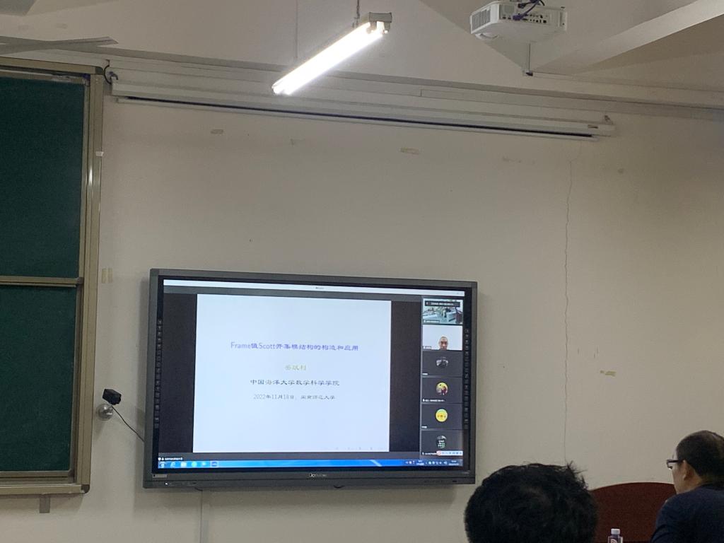 应公司邀请,11月18日下午,中国海洋大学岳跃利教授在腾讯会议作了题为《Frame值Scott开集模结构的构造与应用》的报告。相关师生聆听了此次报告,报告由黄韩亮老师主持。
