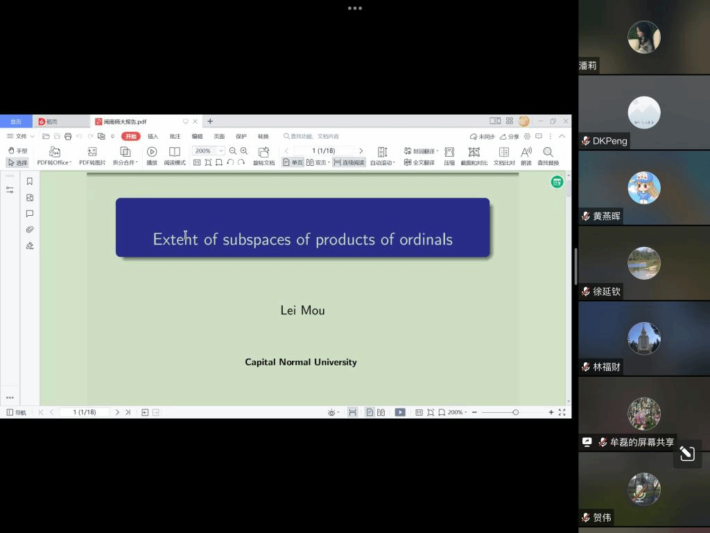应公司邀请,11月19日上午,首都师范大学牟磊教授在腾讯会议作了题为《序数乘积的子空间的extent》的报告。相关师生聆听了此次报告,报告由林福财老师主持。