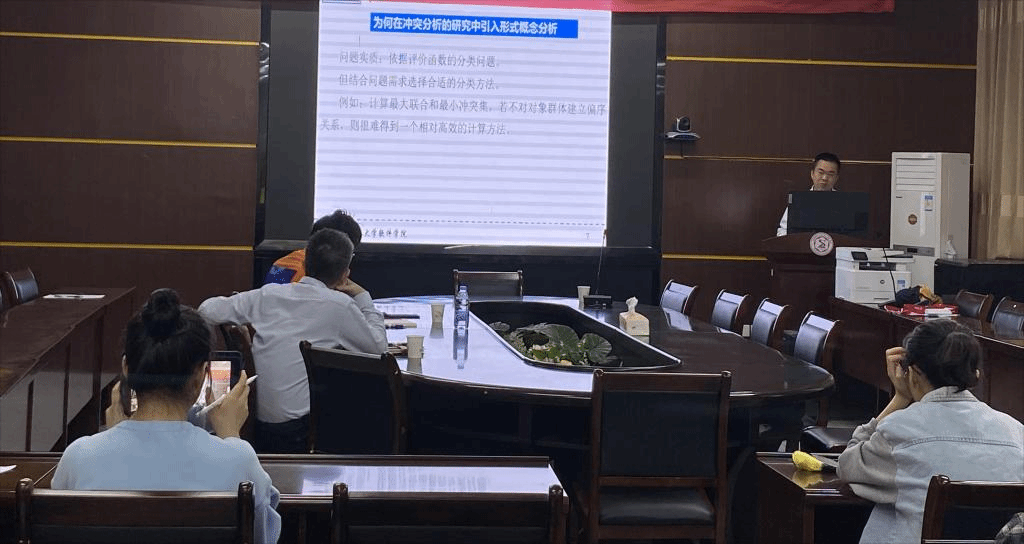 应公司邀请,4月24日下午,河南理工大学智慧来副教授在砺志楼114作了题为《基于形式概念分析的冲突分析》的报告。相关师生聆听了此次报告,报告由孙文老师主持。