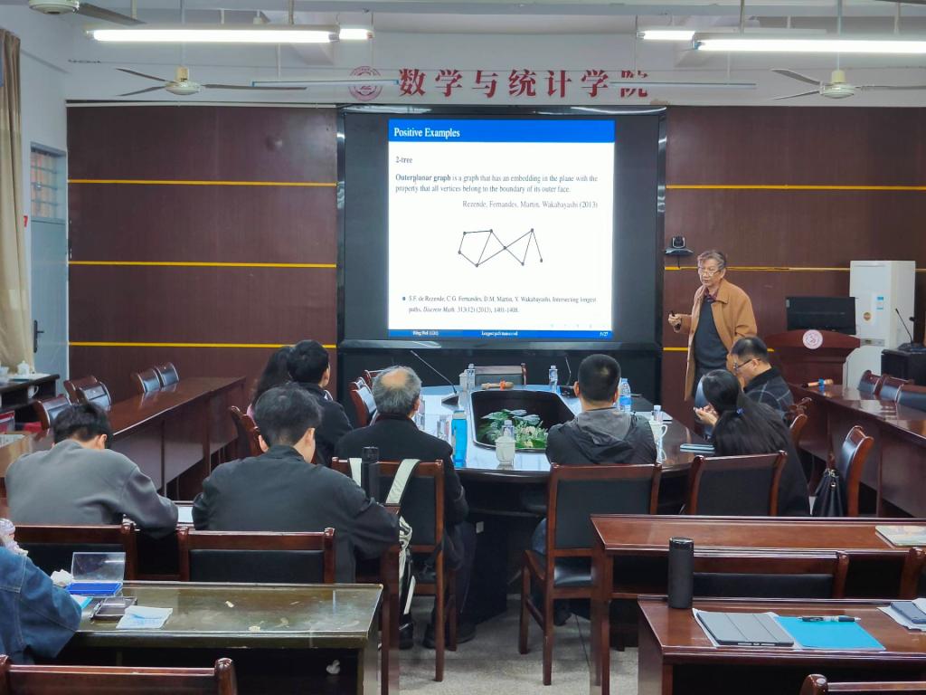 应公司邀请,12月28日上午,美国密西西比大学卫兵教授在砺志楼114作了题为《Bonds intersecting long paths in k-connected graphs》的报告。相关师生聆听了此次报告,报告由卢福良老师主持。
